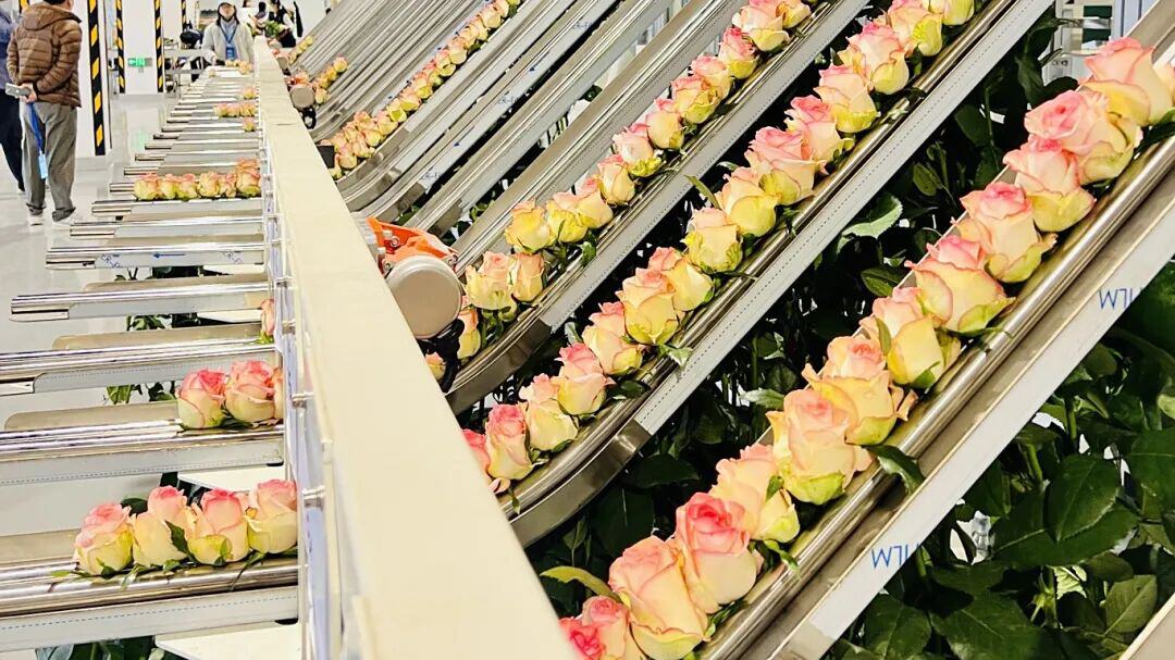 在石林县板桥街道的生产基地,成片的玫瑰在晨光中摇曳,这些即将成为永生花的鲜花,将通过云南菲丽雅花卉有限公司的全产业链运作,走向全球市场。