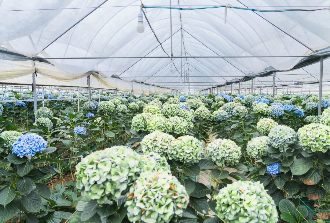 宝峰村党总支书记、村民委员会主任鲁瑞祥介绍:“我们村现在的绣球种植面积有600多亩。为了树立和壮大我们村的绣球花品牌,今年初,我们成立了微许花卉合作社,主要就是种植精品绣球。目前,合作社有160亩、9个品种的绣球,每年可产绣球花150万枝,A级花占了60%左右。”