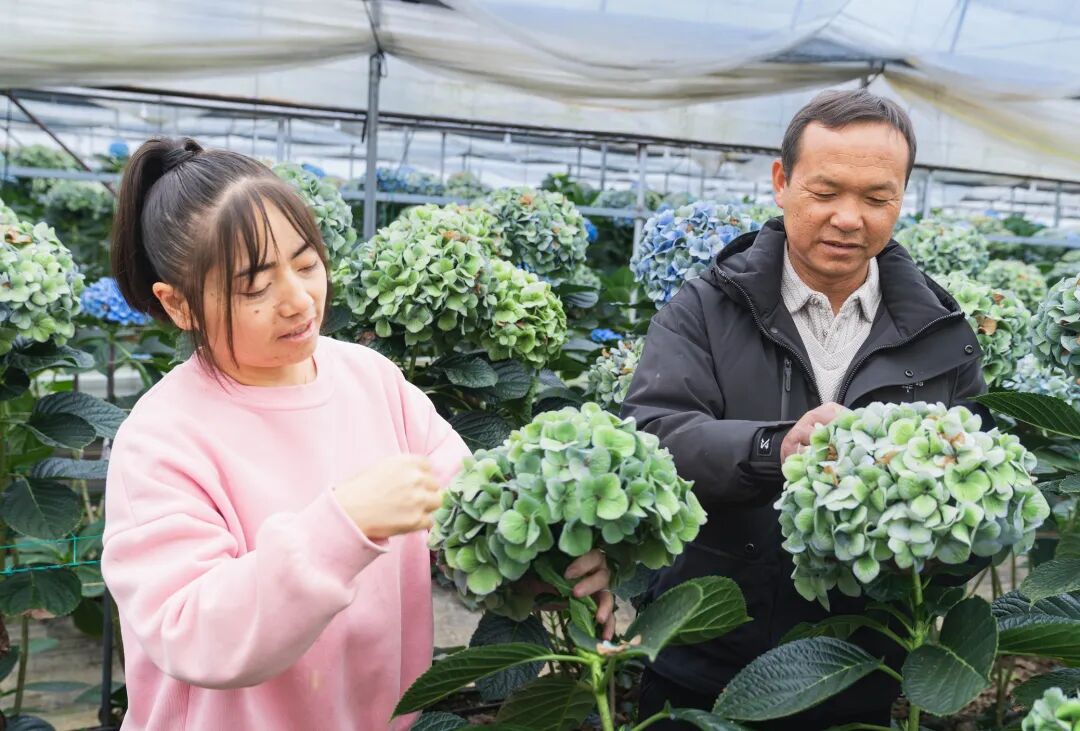 以前,宝峰村零散种植的绣球花较多,但品种单一、品质一般,种植户们“单打独斗”,都是靠运气赚“辛苦费”,有时连基本的人工费都挣不到。合作社成立后,采取“统一规划、统一育苗、统一技术、统一管理、统一销售”的模式,有效降低了单户种植的风险和成本。此外,他们还建立了“风险同担、利益共享”分配机制,并将合作社盈利的5%注入村集体经济,反哺乡村建设与民生改善。