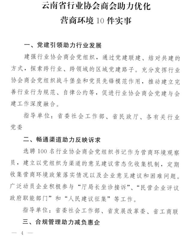 云南省行业协会商会助力优化营商环境10件实事