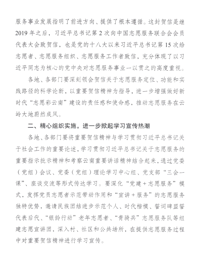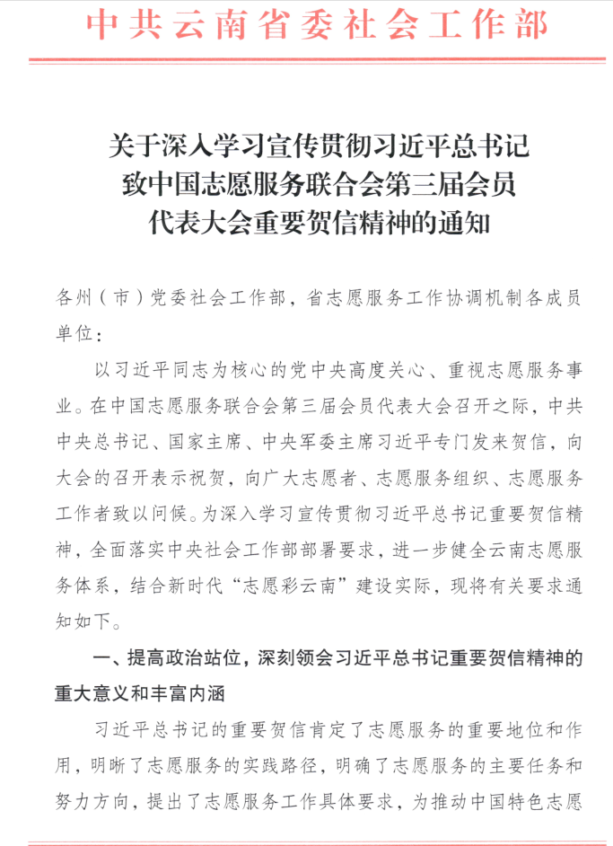 关于深入学习宣传贯彻习近平总书记致中国志愿服务联合会第三届会员代表大会重要贺信精神的通知