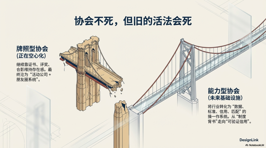 • 能力型协会:把行业当成“数据、标准、信用、匹配”的系统运营,变成行业基础设施。