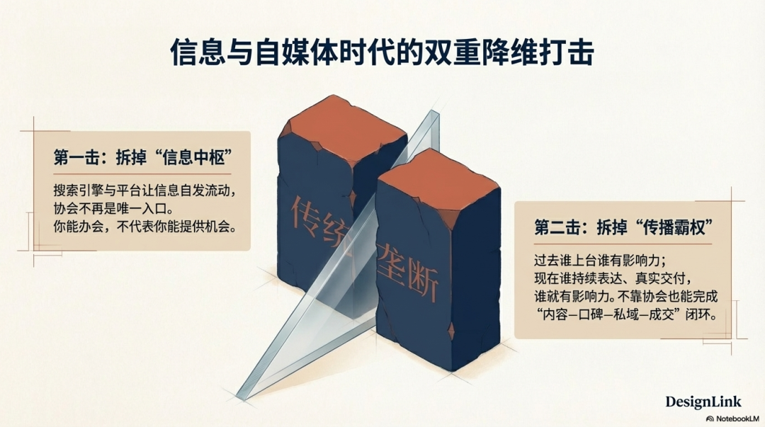 搜索引擎、展会、平台让信息自发流动,协会不再是唯一入口。