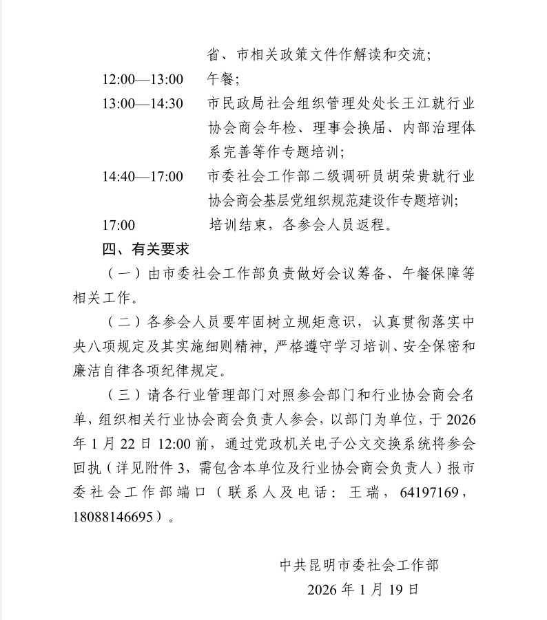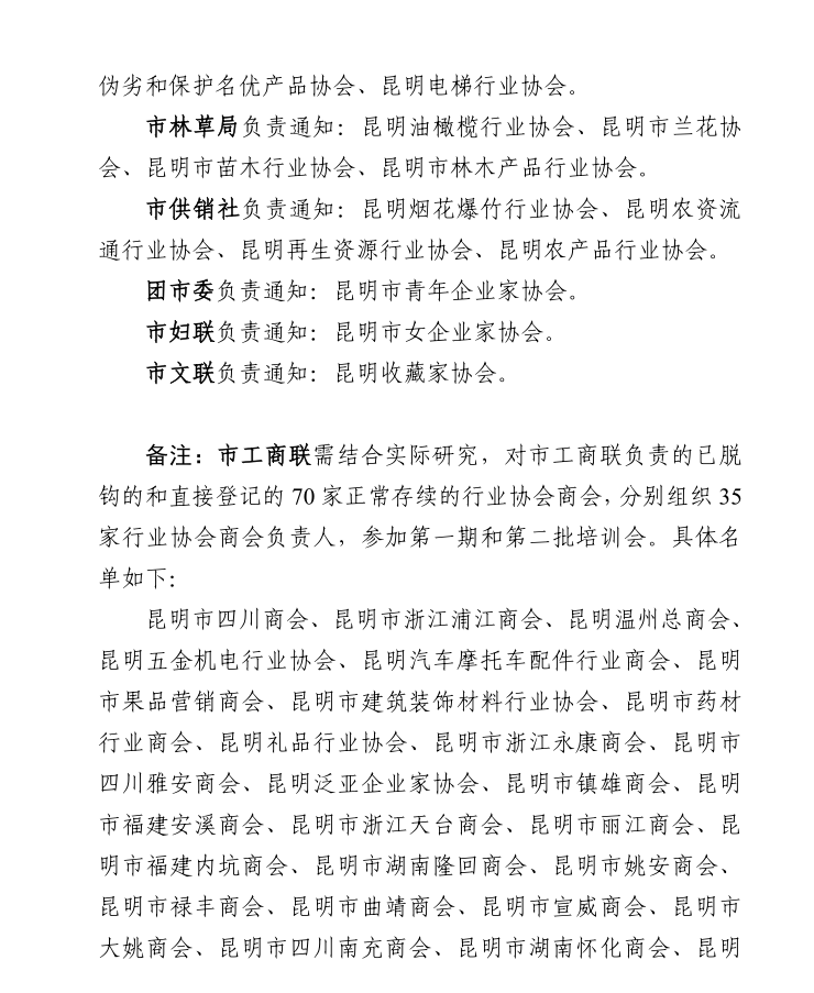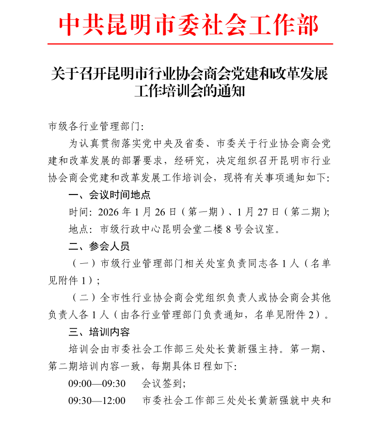 关于召开昆明市行业协会商会党建和改革发展工作培训会的通知