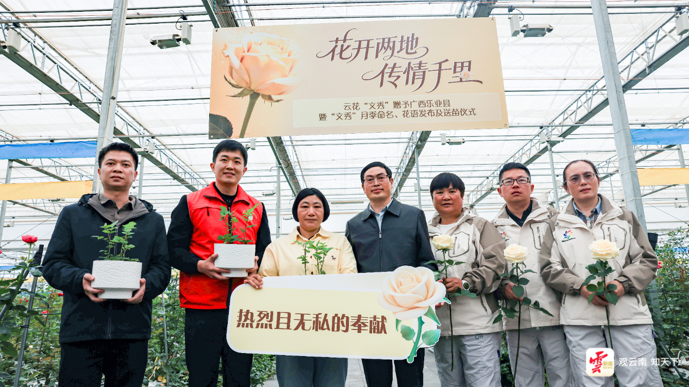 春风送暖,繁花似锦。3月18日下午,花开两地 传情千里——云花“文秀”赠壮乡“文秀”月季命名暨送苗仪式在昆明市呈贡区云南省农业科学院花卉研究所试验基地隆重举行。这株具有完全自主知识产权的“中国芯”月季,致敬“时代楷模”黄文秀,正式定名并启程奔赴广西壮乡,让她的精神如花般在云岭与壮乡璀璨绽放、绵延永续,更为乡村振兴注入温暖而持久的力量。