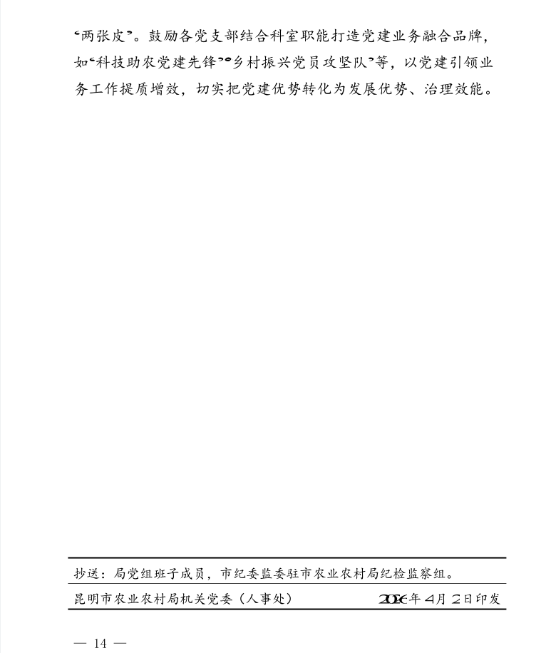 中共昆明市农业农村局党组关于印发《2026年市农业农村局党的建设工作要点》的通知