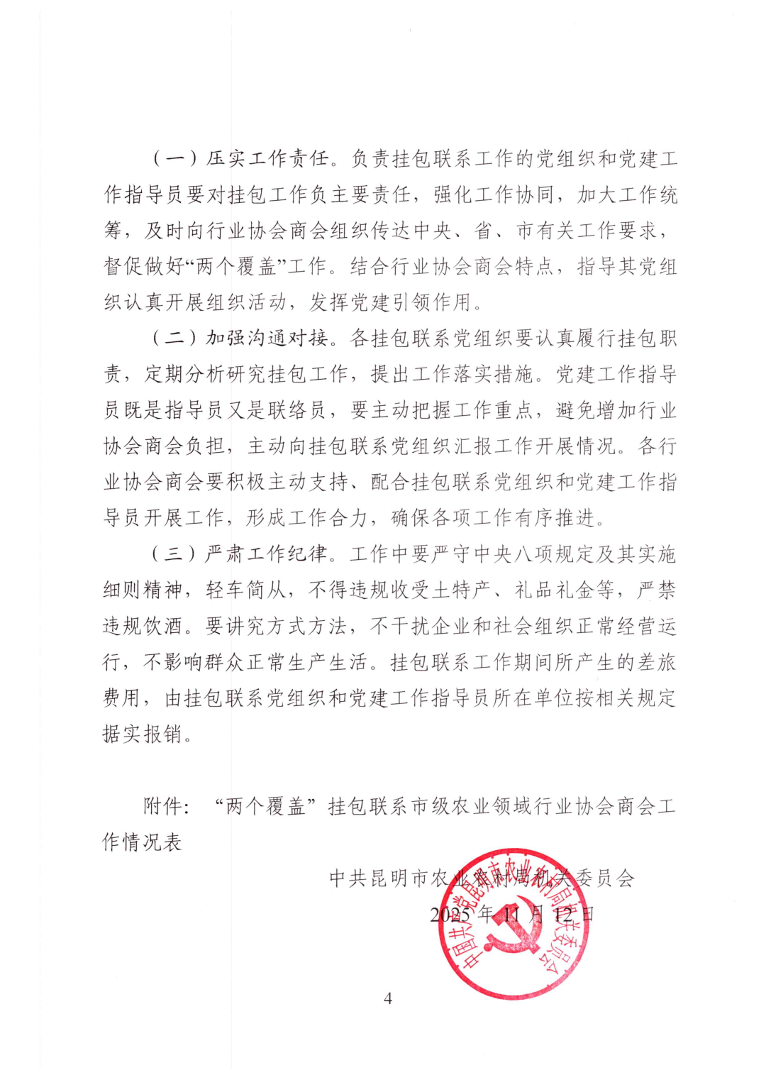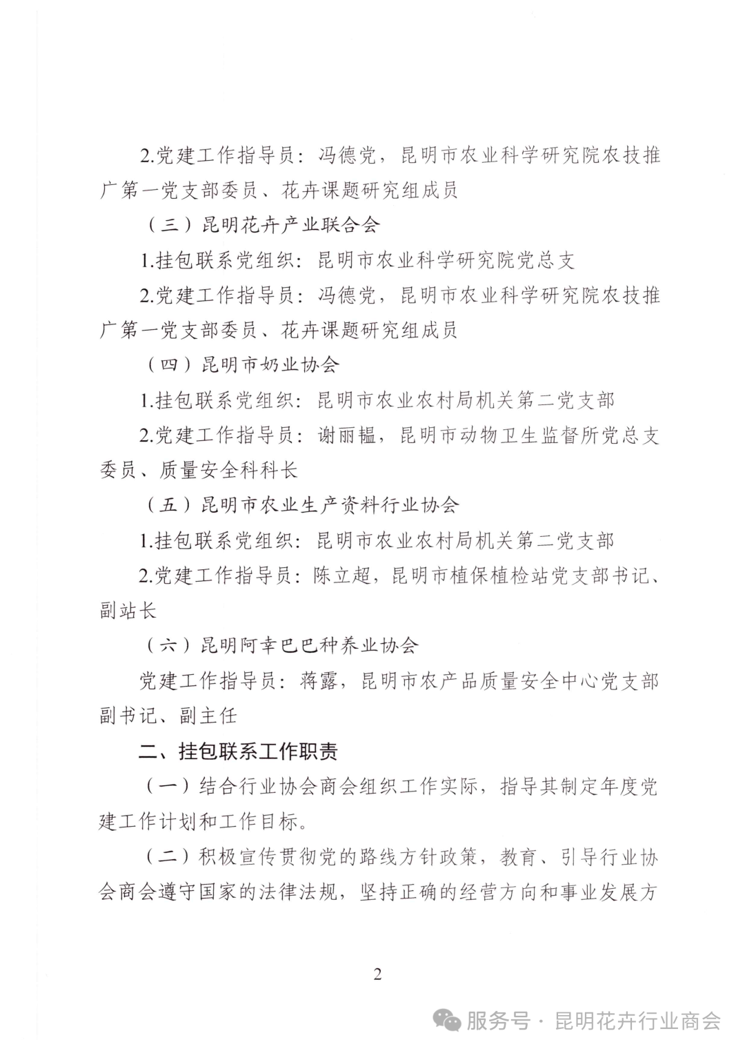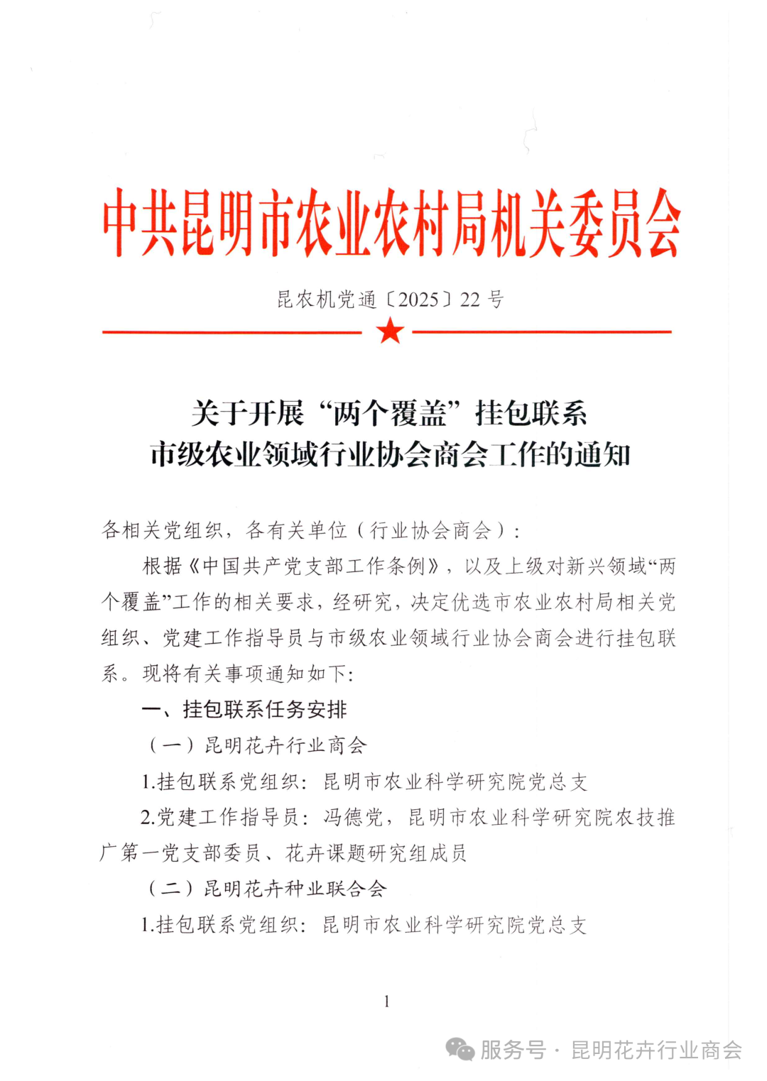 中共昆明市农村农业局机关委员会——关于开展“两个覆盖”挂包联系市级农业领域行业协会工作的通知